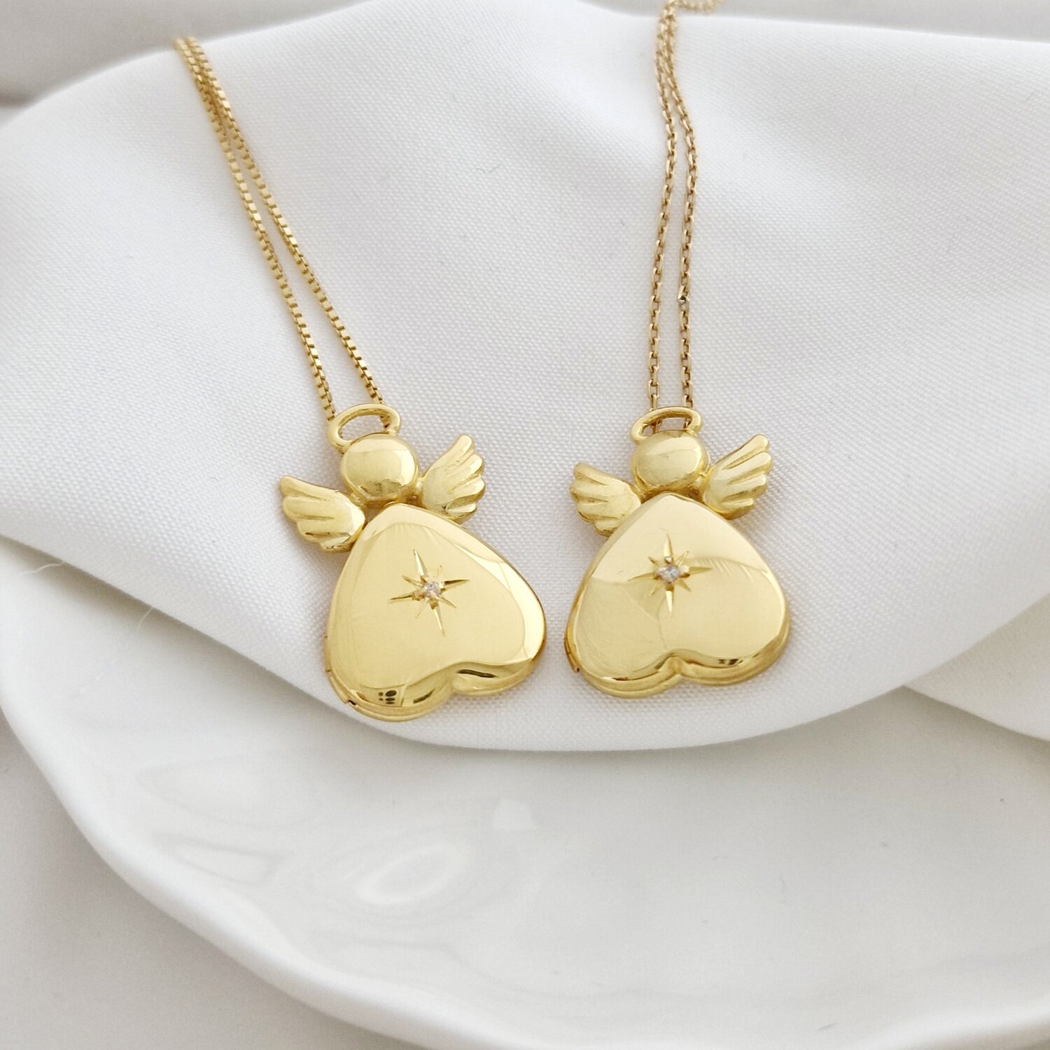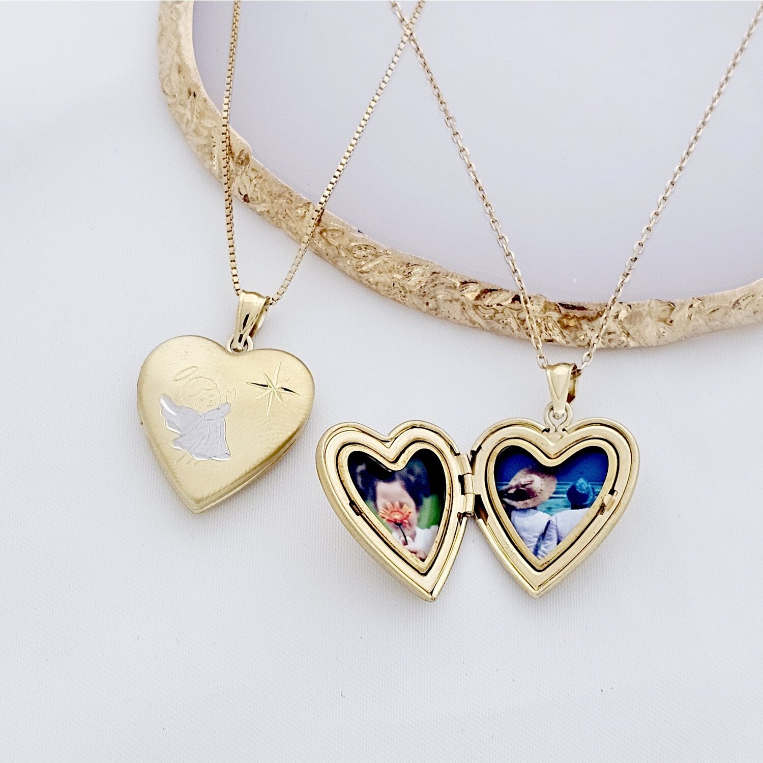 Medalion inima cu poze in interior - Praying Angel - Argint 925 rodiat & placat cu Aur Galben 18K
