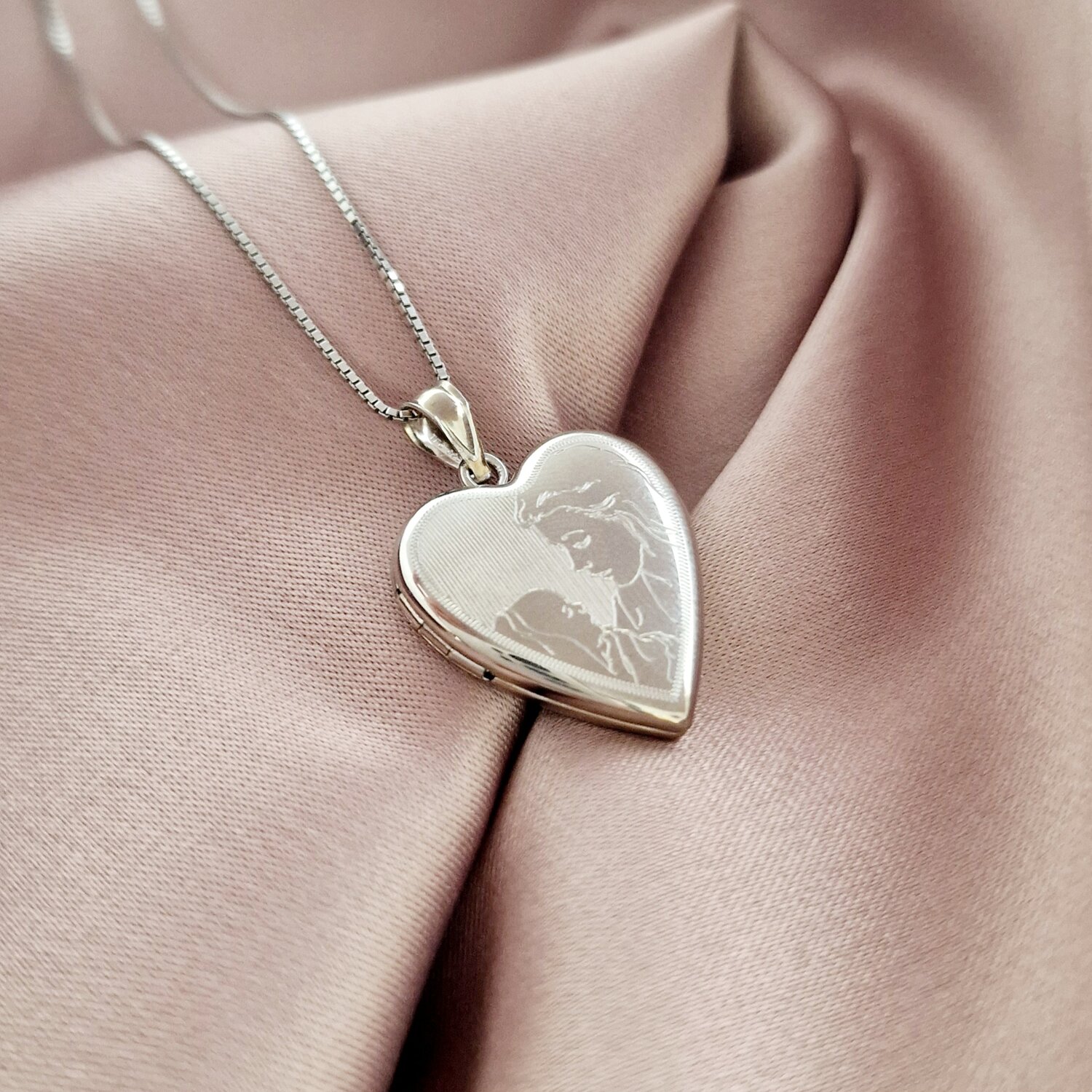 Lantisor cu medalion inima 20 mm cu poza in interior - Personalizat cu gravura mama si bebe - Argint 925