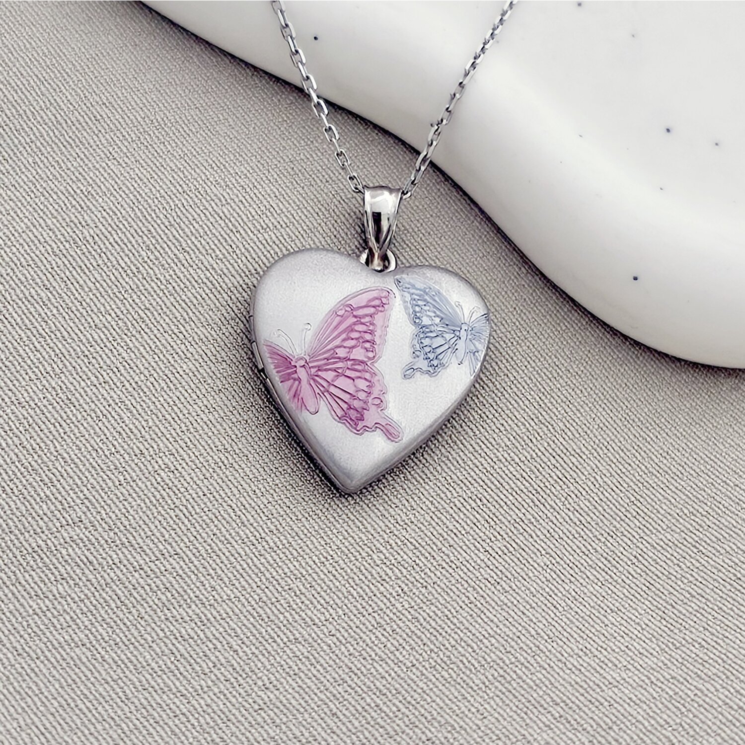 Medalion inima cu poze in interior - Rose&Blue Butterflies - Argint 925 Rodiat