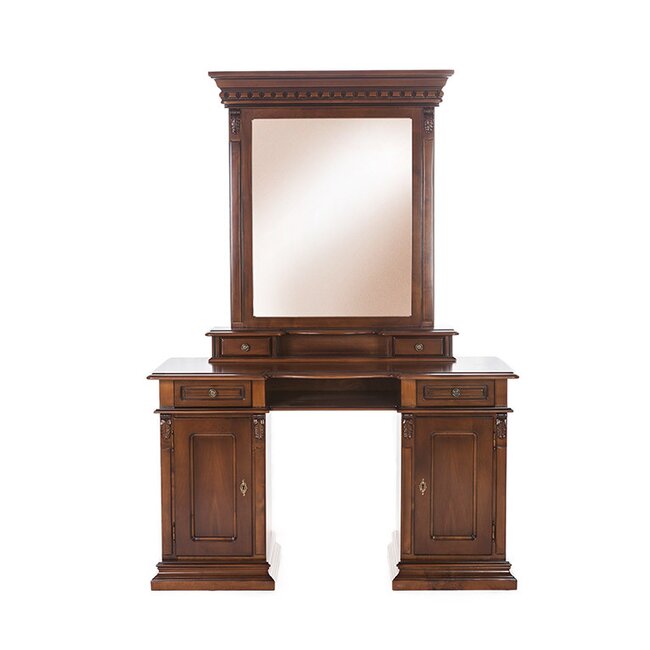 Masă de Toaletă Diana, linie clasică, masiv fag + panel + MDF furniruit nuc, 134x50x78 cm, finisaj la alegere