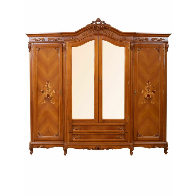 Dulap 4 uși Paris, spațiu generos + finisaje elegante, lemn masiv fag + MDF furniruit, 260x66x245 cm, nuc
