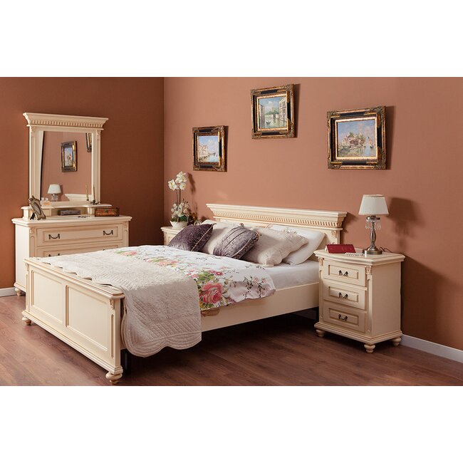 Pat Floris, lemn masiv și MDF, design clasic, 180x200 cm, crem patinat