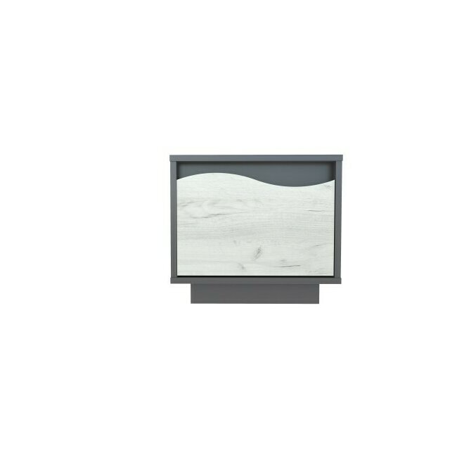 Noptieră White 1S, cu sertar, MDF frezat și PAL melaminat, 57.5x53x39 cm, frasin alb și pin argintiu