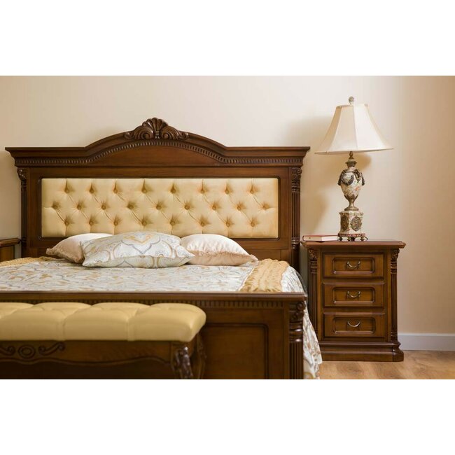 Pat Sonia, structură solidă + design elegant, lemn masiv fag + MDF furniruit, 160x200 cm, nuc