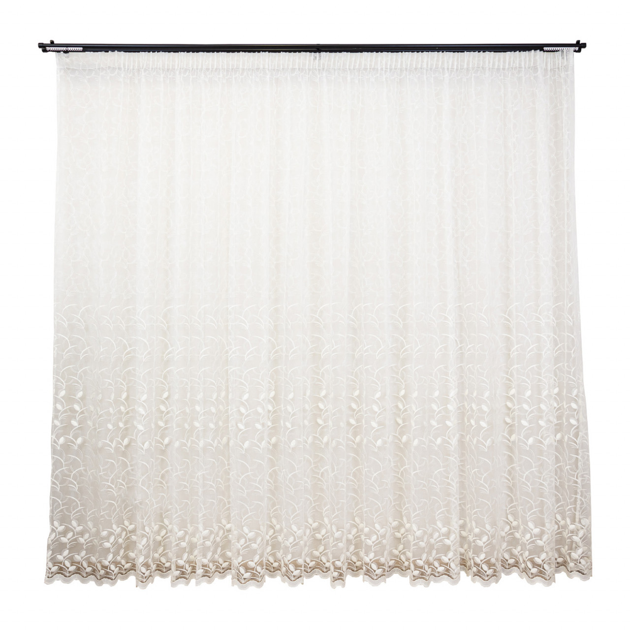 Perdea brodata, nesifonabila, cu fir lame curcubeu, Hiko Leaf ivoire, cu rejansa