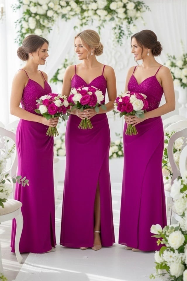 Set 5 bucati Rochie lunga de seara Serelya, cu dantela, Magenta, Marimea L