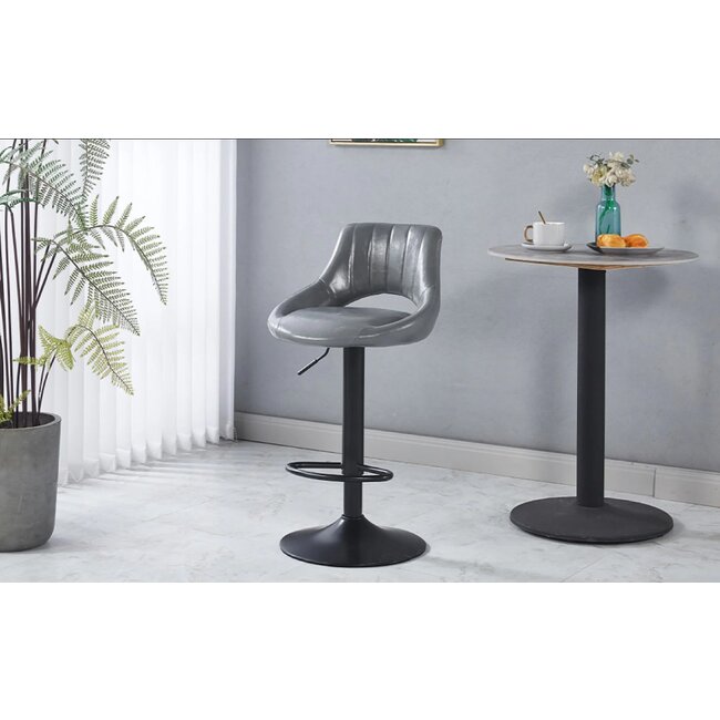 Scaun bar Lary, reglabil pe înălțime, design ergonomic, tapițerie eco-piele, 45x49x84-103 cm, Gri