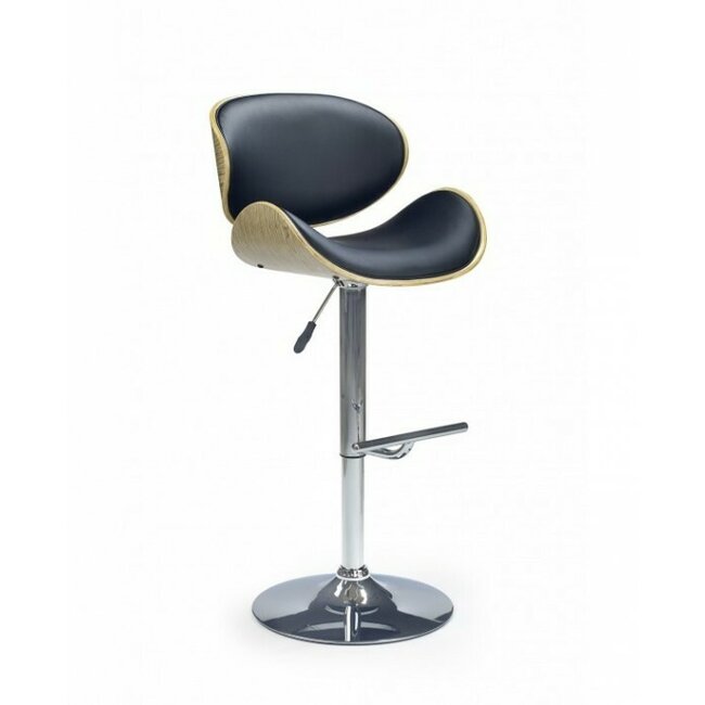 Scaun bar H44, spătar curbat, structură lemn și metal, 53x48x93-115 cm, stejar deschis/negru