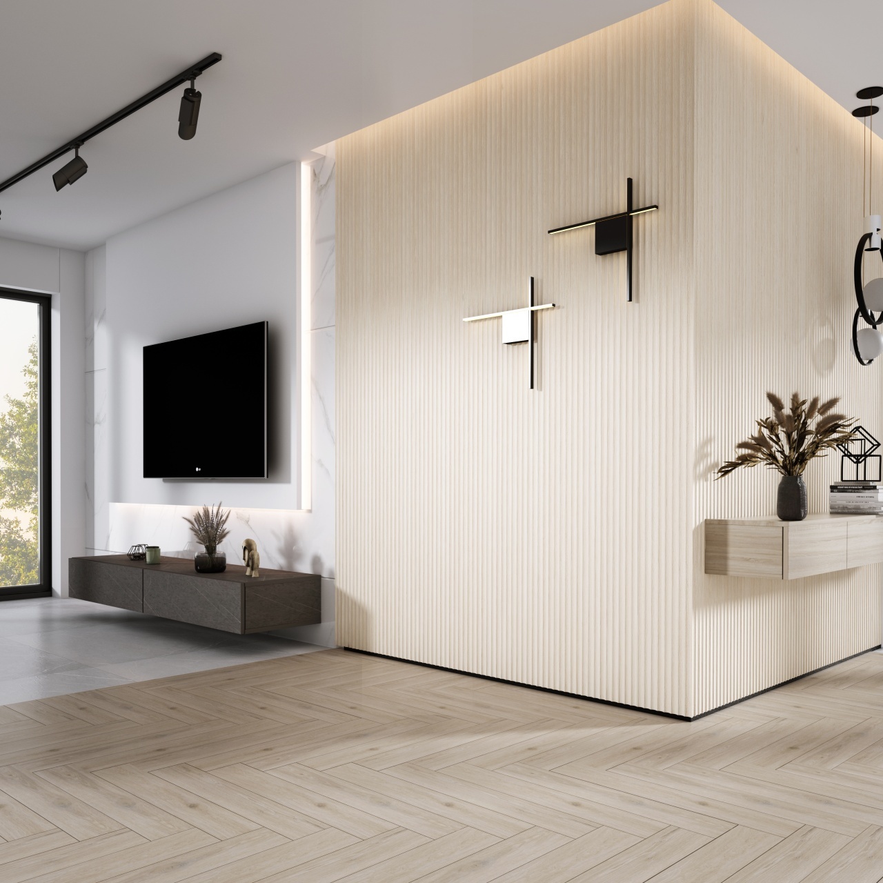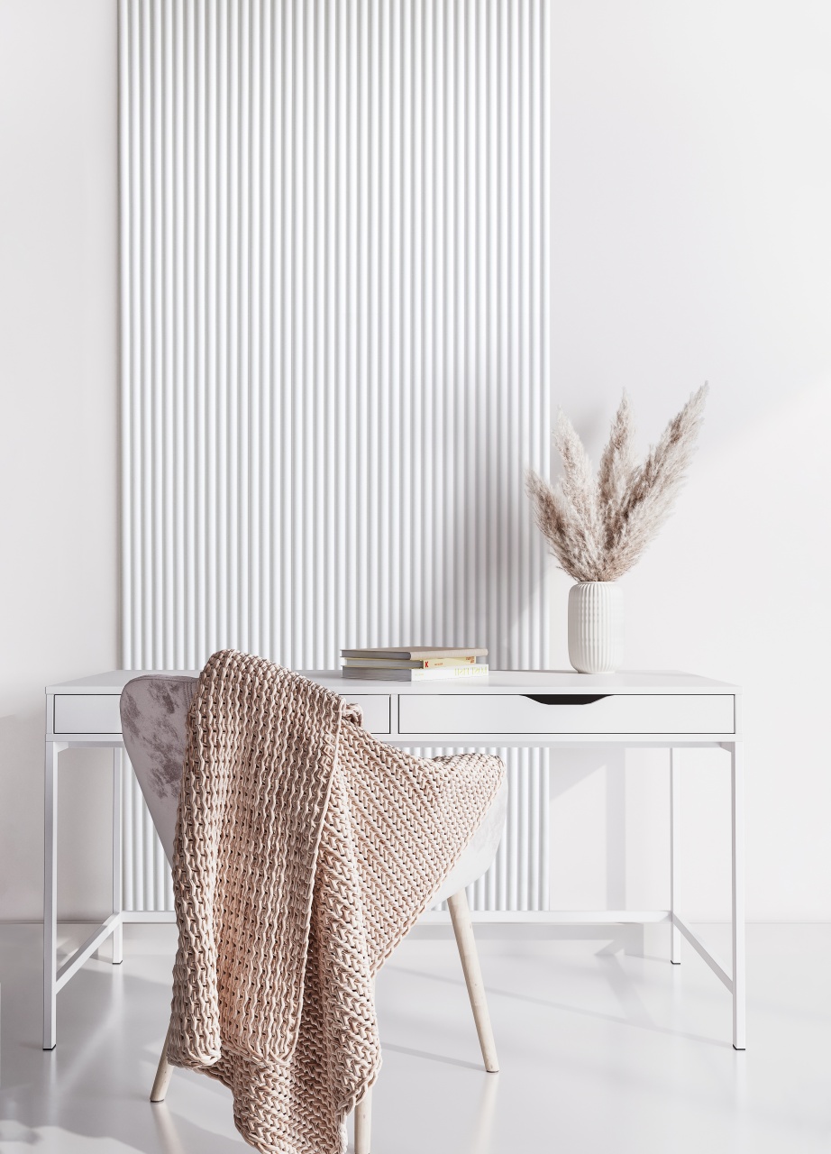 Panou riflaj decorativ 3D Versal, Alb, 11.5x1.3x270 cm