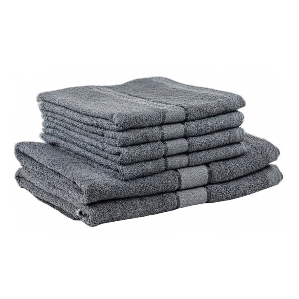 Set 6 Prosoape Gri Inchis din Bumbac 100% - 4 de 50x90cm si 2 de 70x140cm - 420g/mp - 4xPRSM008_2xPRSL008