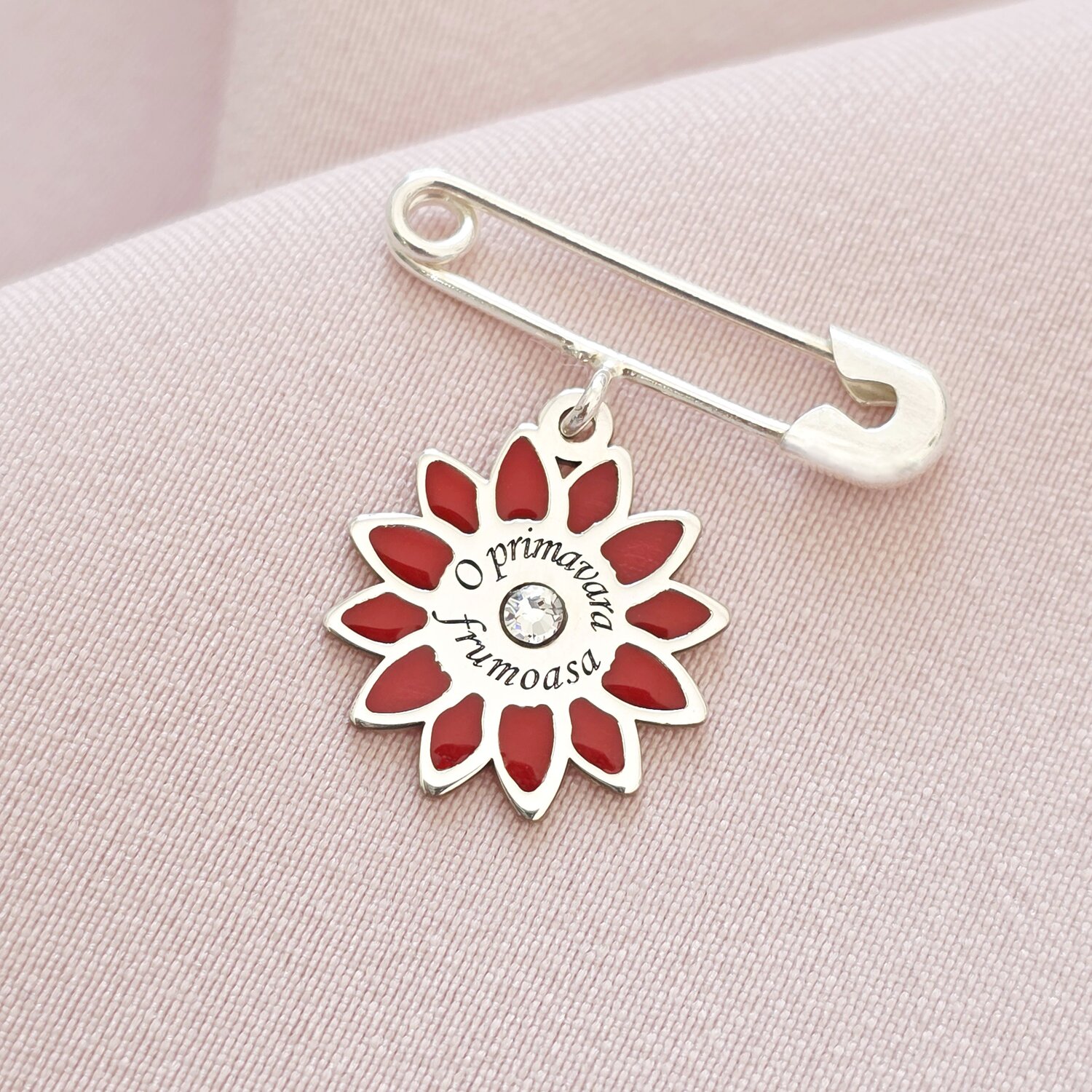 Brosa Ac de siguranta - Floare de Primavara – Argint 925 - Cristal Swarovski