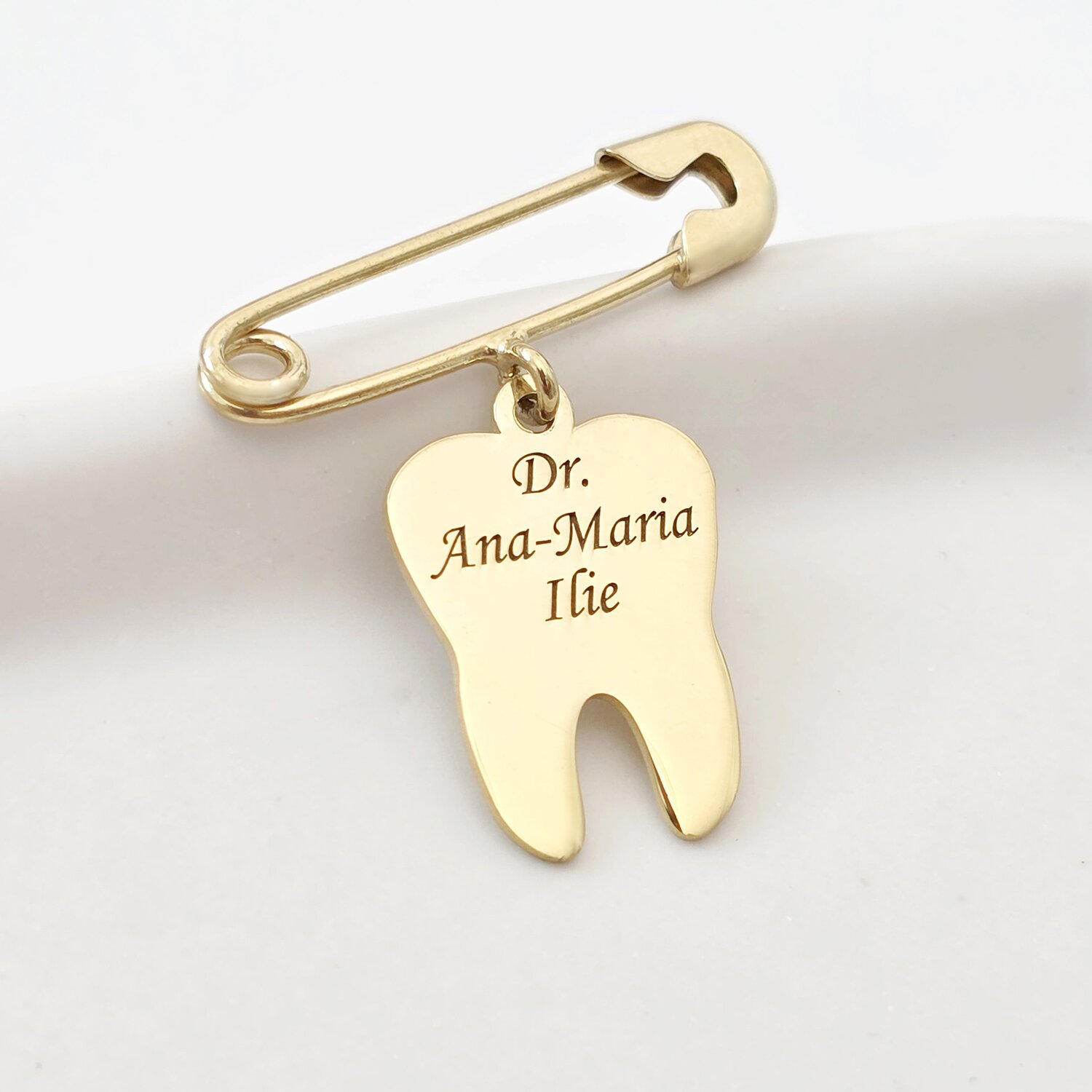 Brosa Ac de siguranta - Pandantiv Dinte – Argint 925 placat cu Aur Galben 18K