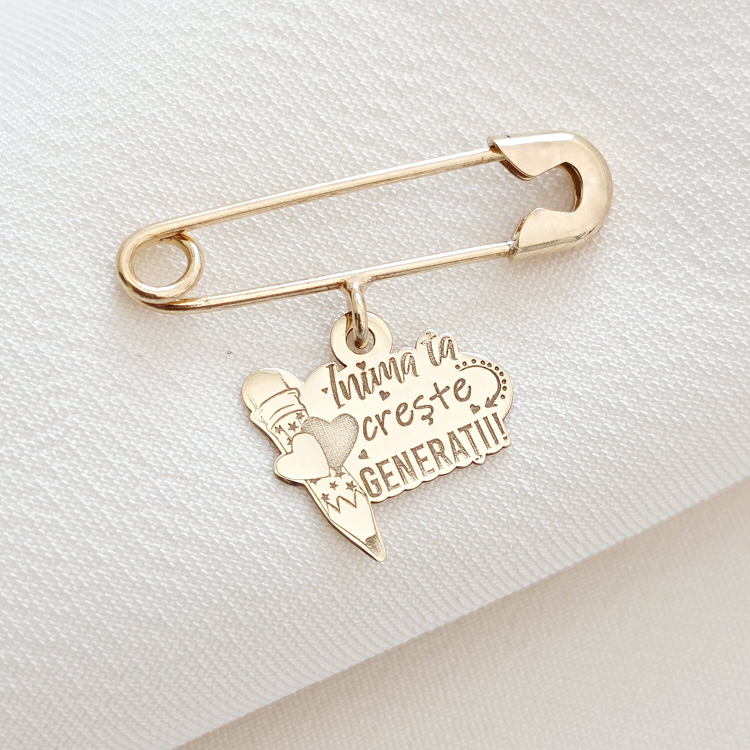 Brosa Ac de siguranta - Pandantiv Educatoare/Invatatoare - Aur Galben 9K