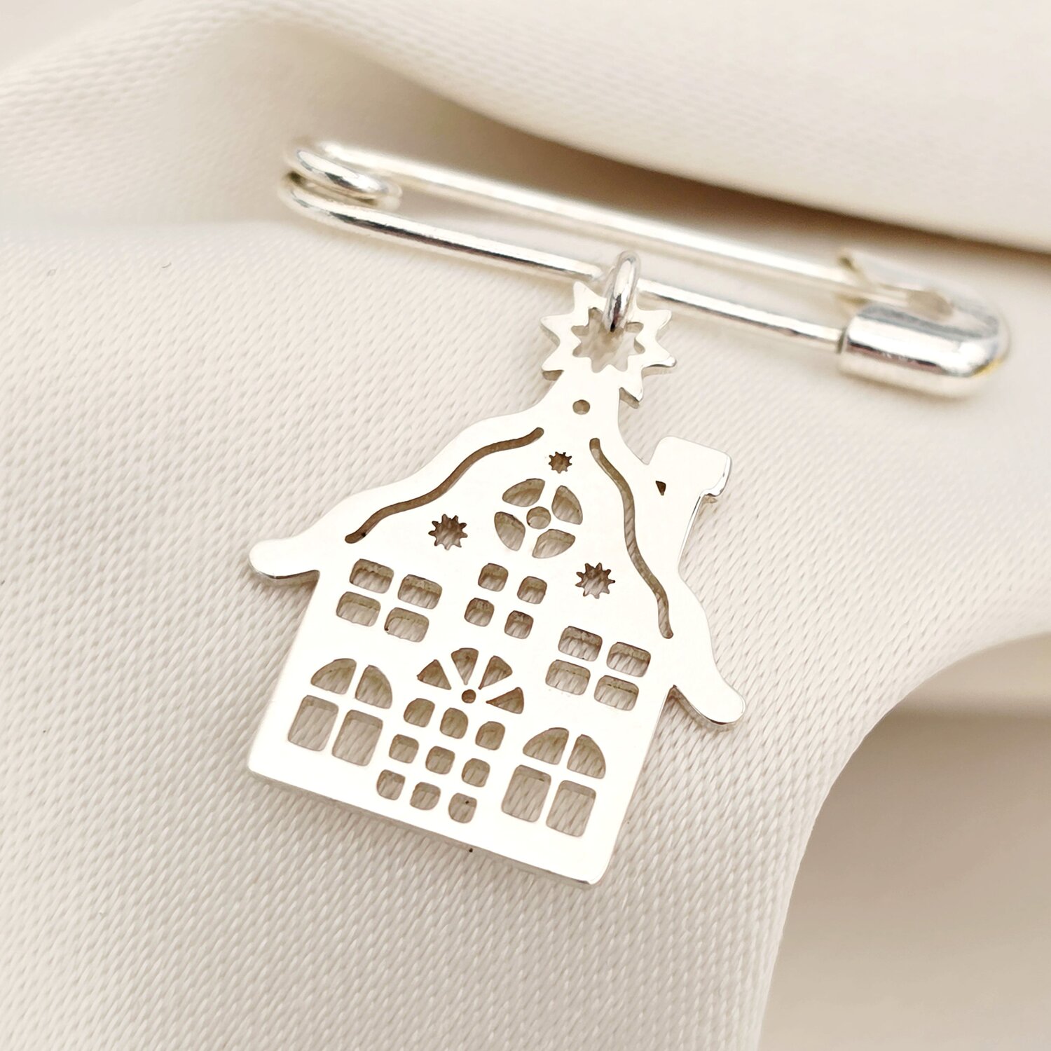 Brosa Ac de siguranta - Pandantiv Casuta decupata – Argint 925