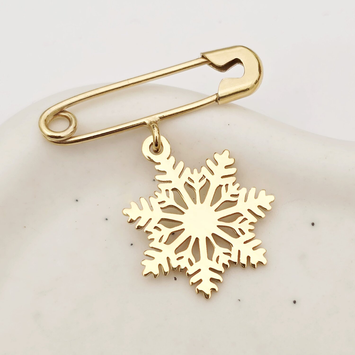 Brosa Ac de siguranta - Pandantiv Fulg de nea – Argint 925 placat cu Aur Galben 18K