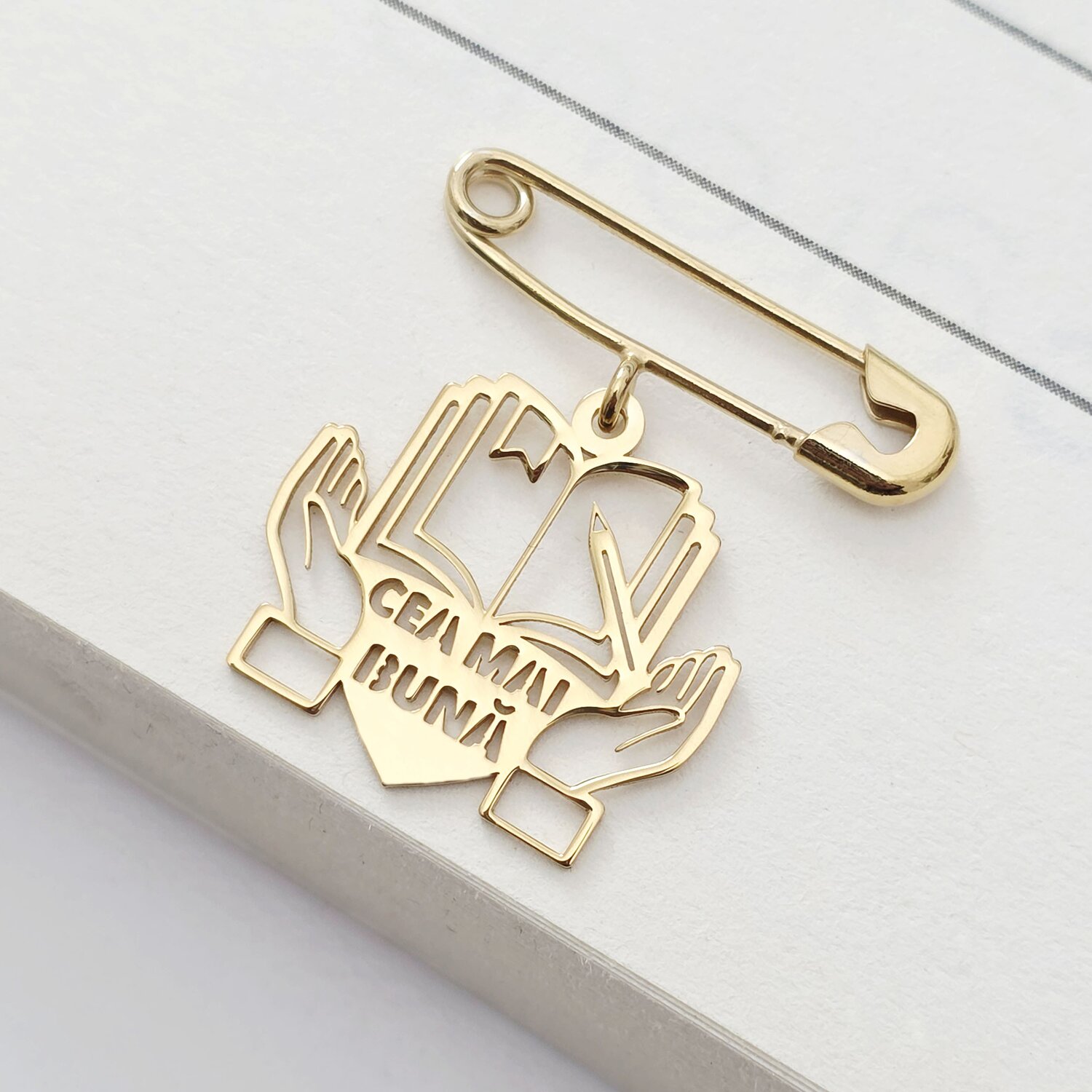 Brosa Ac de siguranta - Pandantiv Carte Invatatoare – Argint 925 placat cu Aur Galben 18K