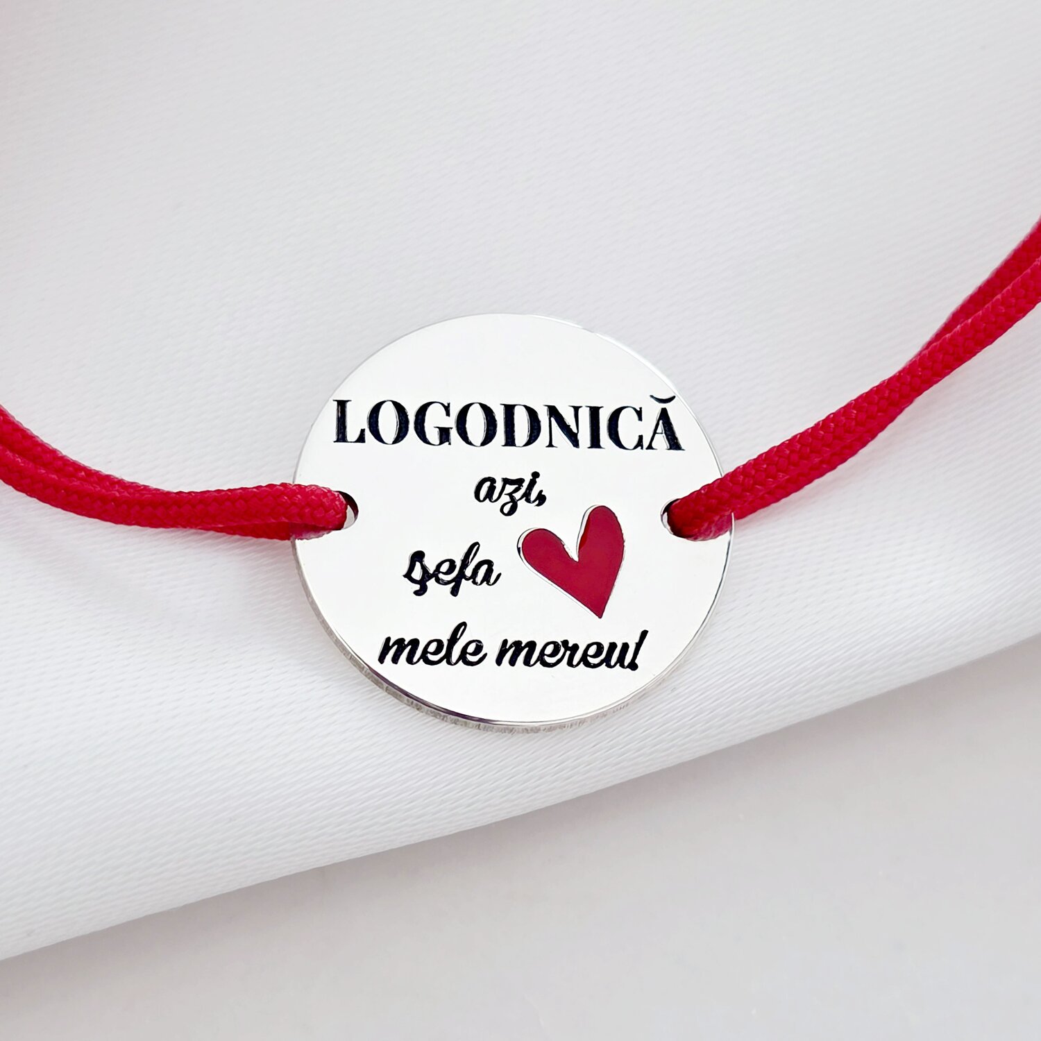 Bratara logodnica azi, sefa inimii mele mereu - Argint 925 si email rosu - Snur reglabil