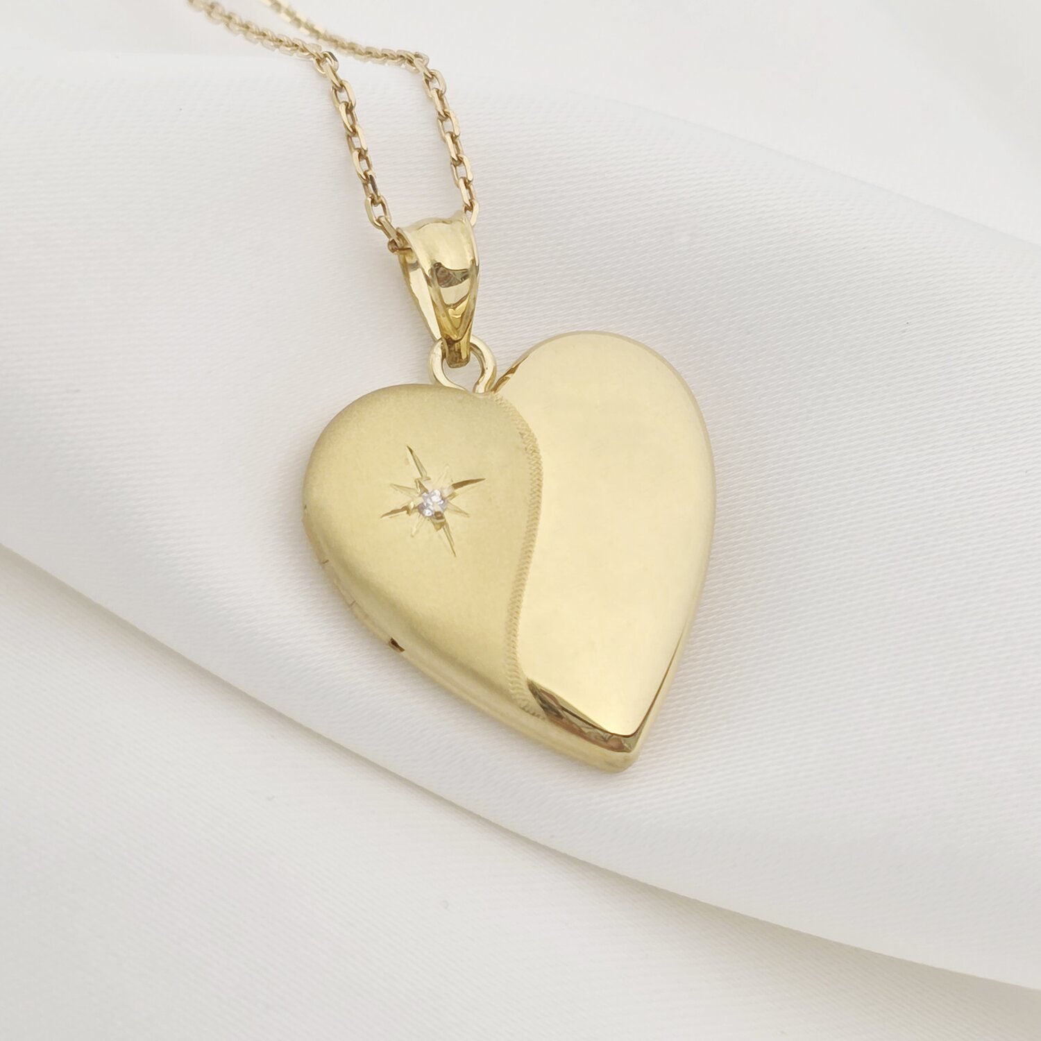 Medalion inima cu poze in interior - Yin&Yang - Argint 925 placat cu Aur Galben 18K - Cristal White Zirconia