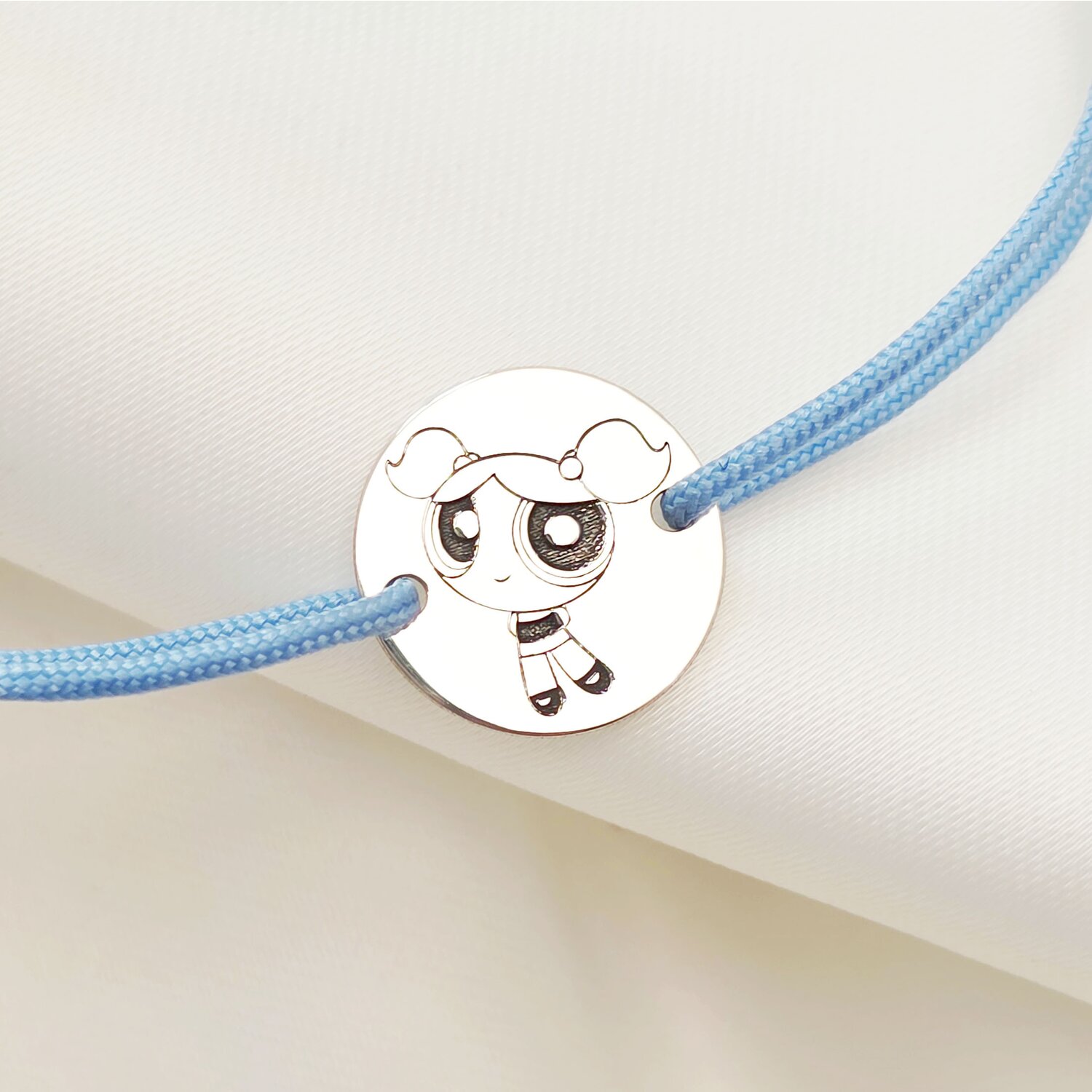 Bratara personalizata - Banut 12mm - Bubbles - Fetitele Powerpuff - Argint 925 - snur reglabil albastru