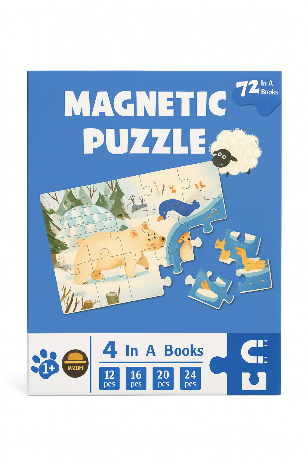 Puzzle Magnetic Carte - 4 puzzle-uri (12, 16, 20, 24 piese), 72 piese total, pentru copii 1+
