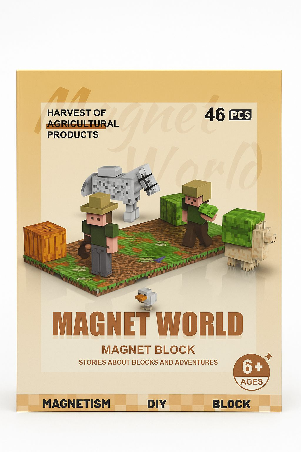 Joc de Construit Magnetic Magnet World - Harvest of Agricultural Products - 46 Piese 15x10.5x6cm