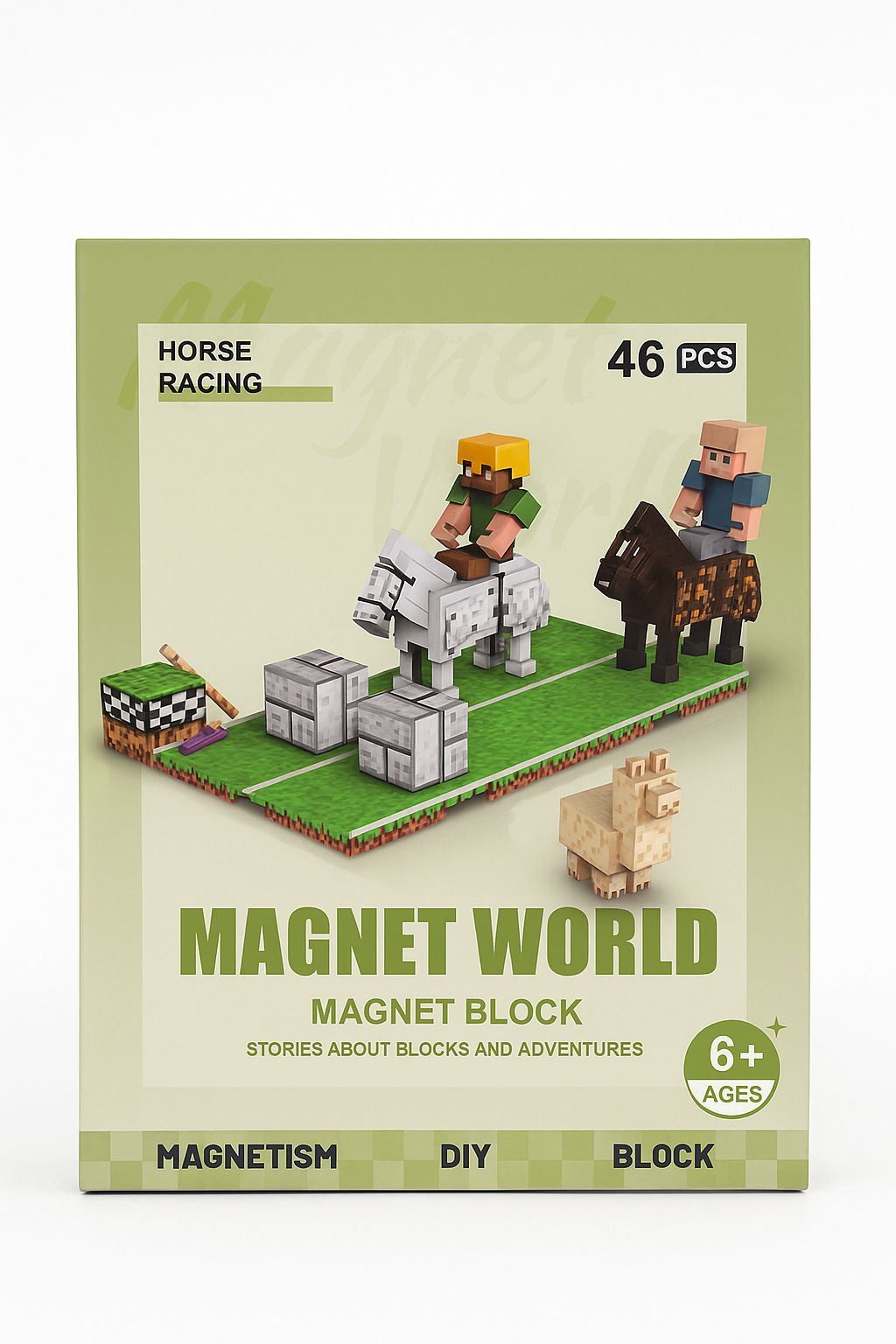 Joc de Construit Magnetic Magnet World - Horse Racing - 46 Piese, 15x10.5x6cm