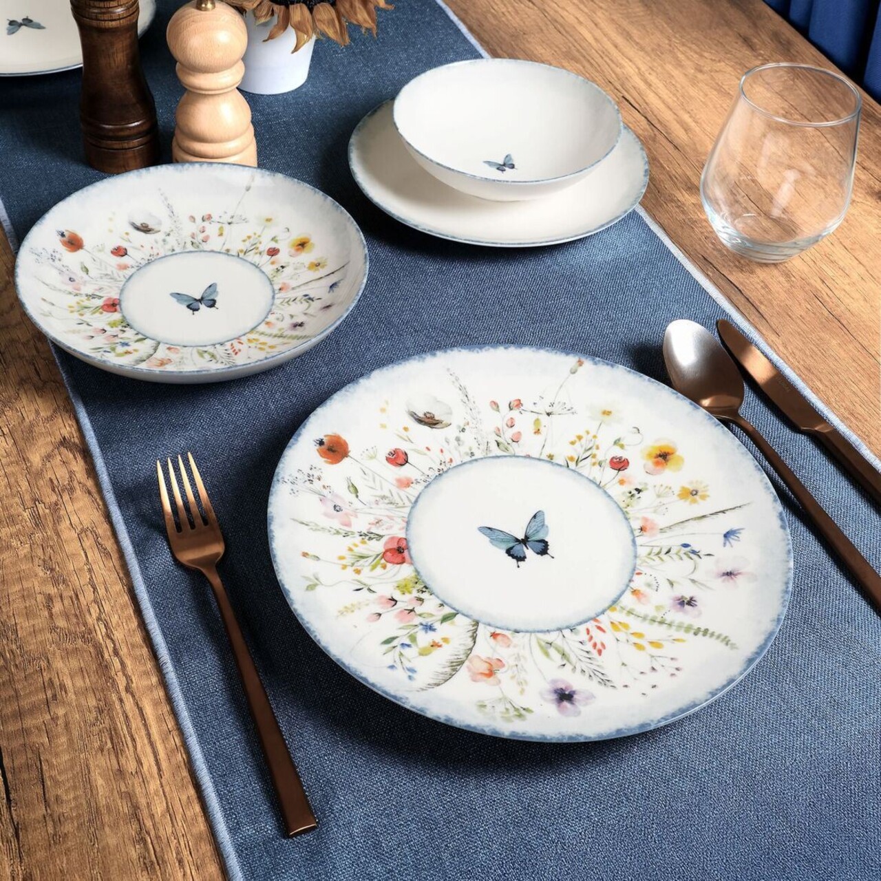 Serviciu de masa, Hermia, 710KTP3683, Farfurie: 20 x 20 cm (4 bucăți), Crem / Albastru
