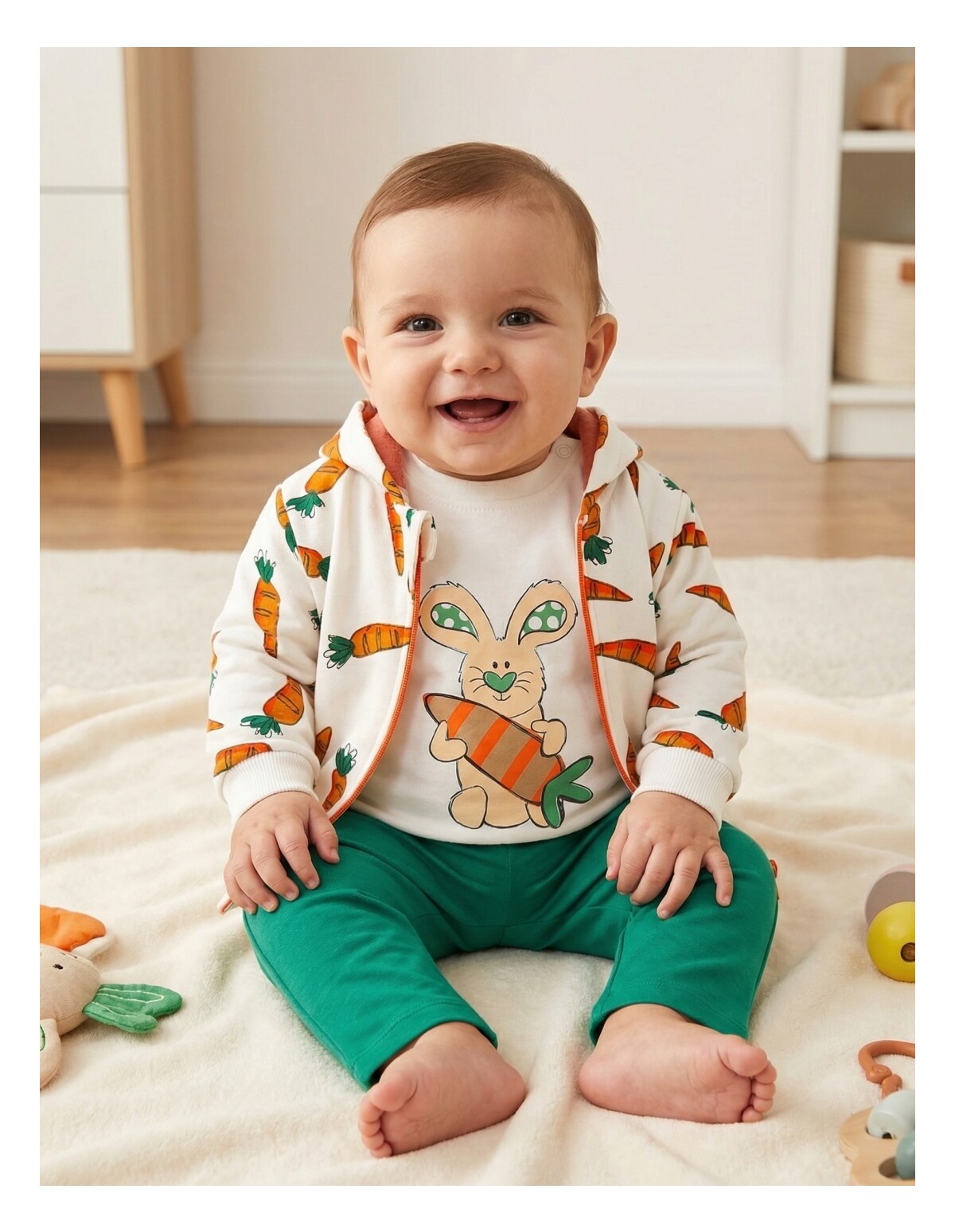 Costumas 3 piese Morcovi alb-verde