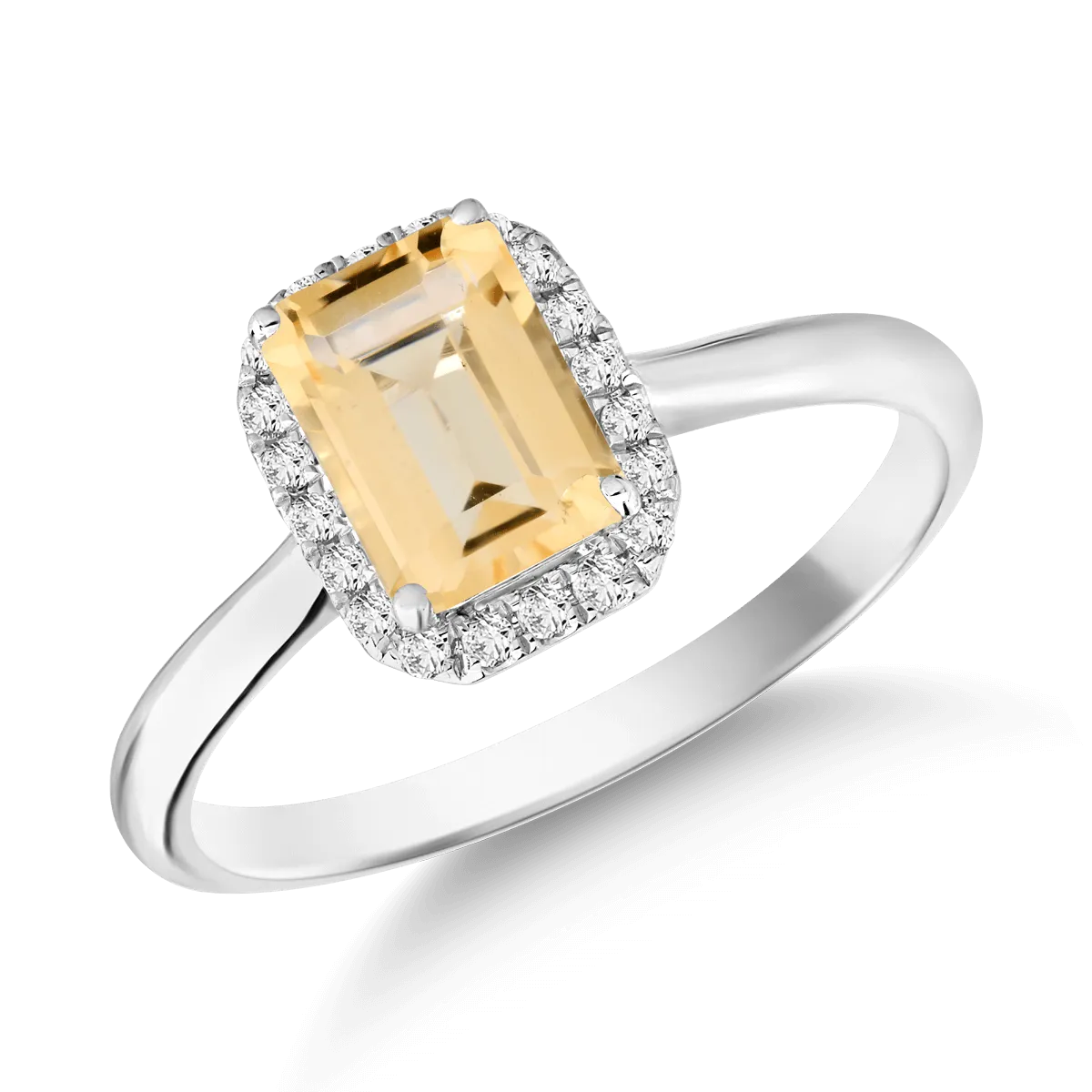 Inel din aur alb-galben cu diamante galbene si incolore de 0.67ct taietura cushion si round