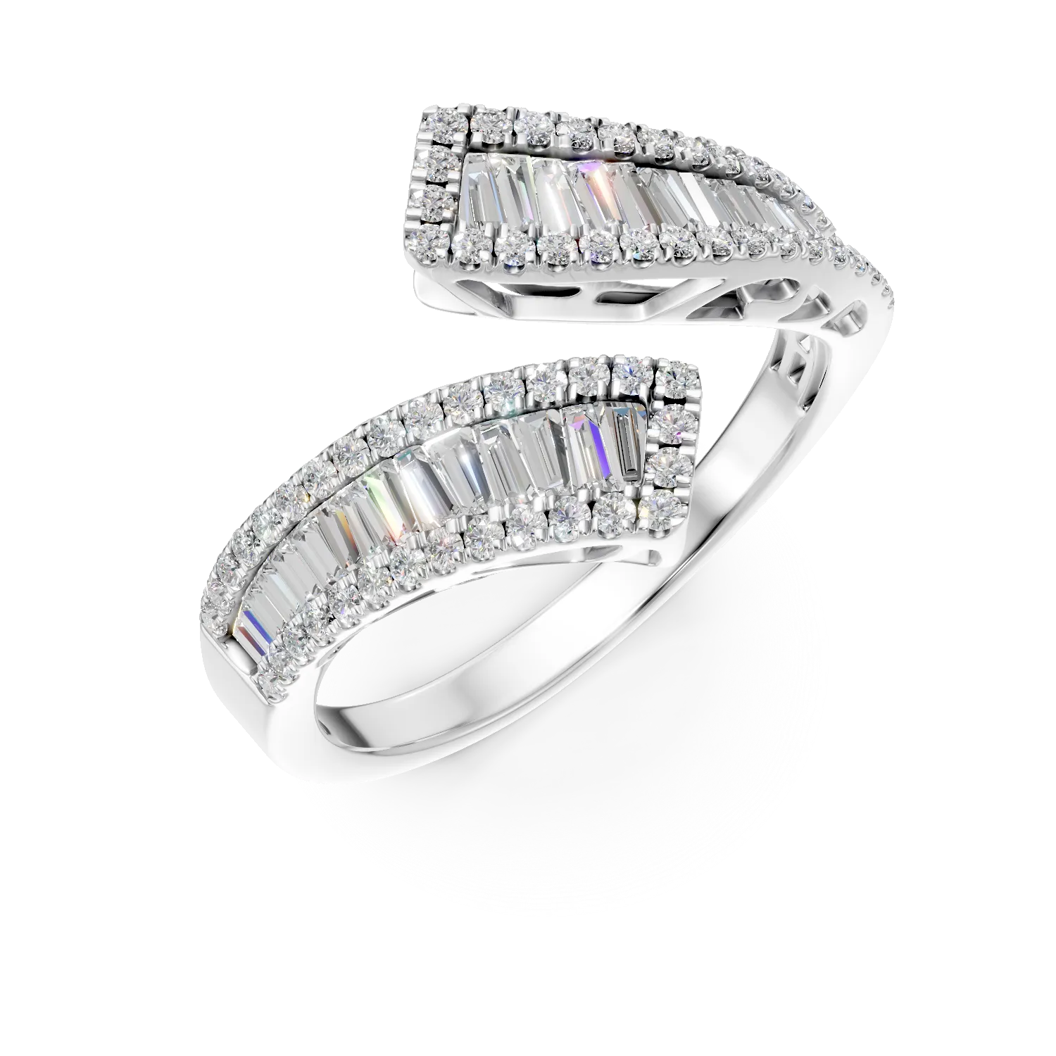 Inel geometric din aur alb cu diamante baguette de 0.27ct si diamante round de 0.18ct