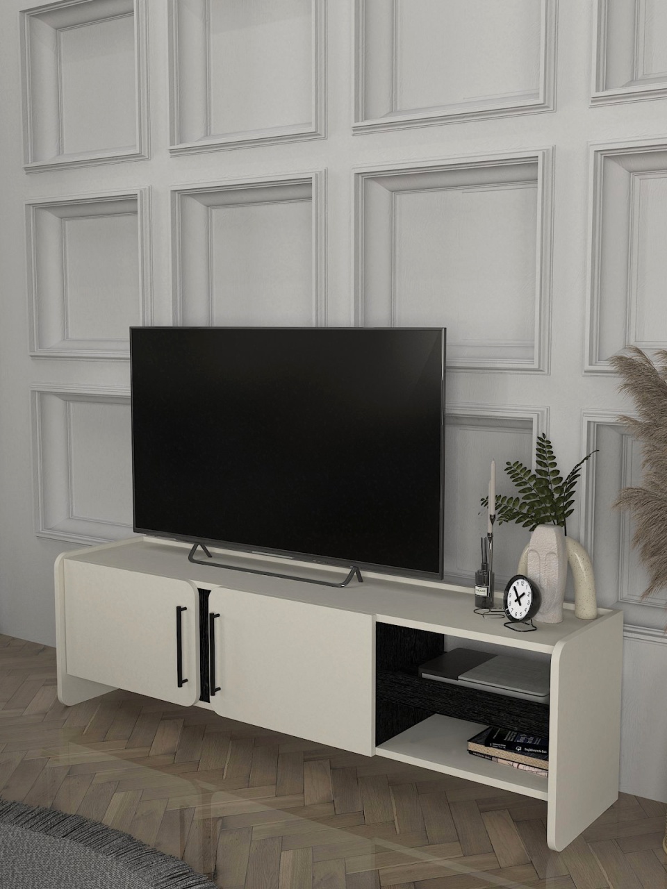 Comoda TV, Simple Form, UnicUtil, Crem-Negru