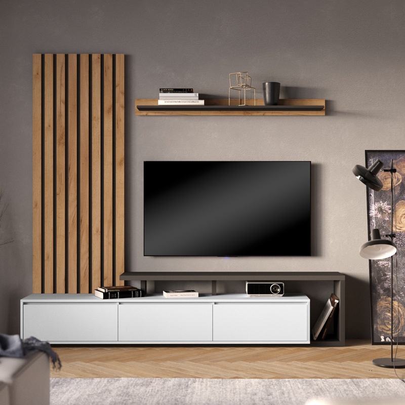 Set mobilă living Calvados, stejar/antracit, 210x37.5x27.9 cm