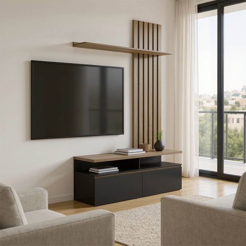 Set mobilă living Wendy, stejar/negru, 195.1x37.3x219.1 cm