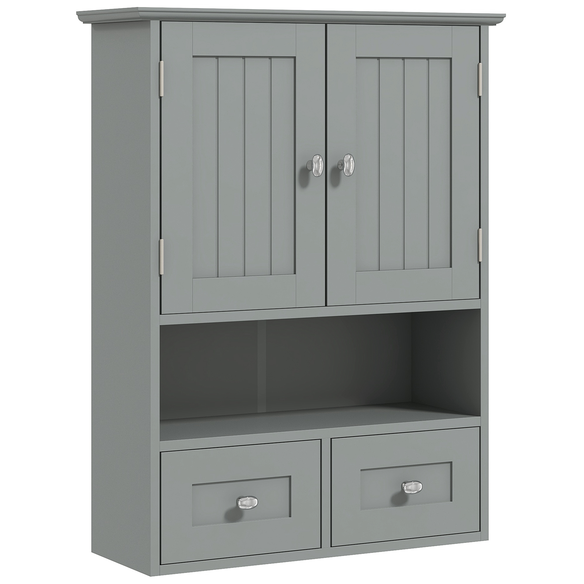 Kleankin Dulap de Perete pentru Baie cu 2 Uși, un Raft Deschis și 2 Sertare, Mobilier Multifuncțional, 50,8x17,8x66 cm, Alb | Aosom Romania