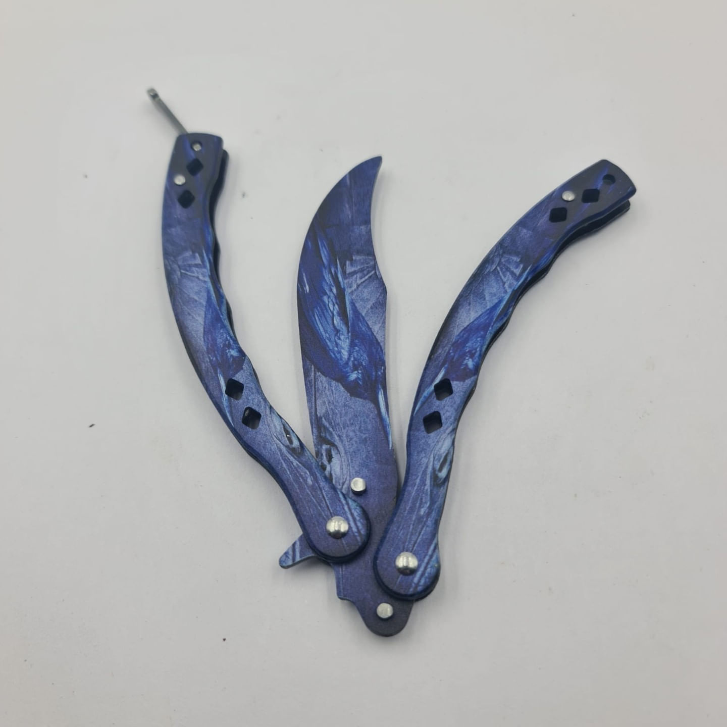 Cutit Fluture Fara Tais Pentru Antrenament, Model Soim, 24 cm, Albastru