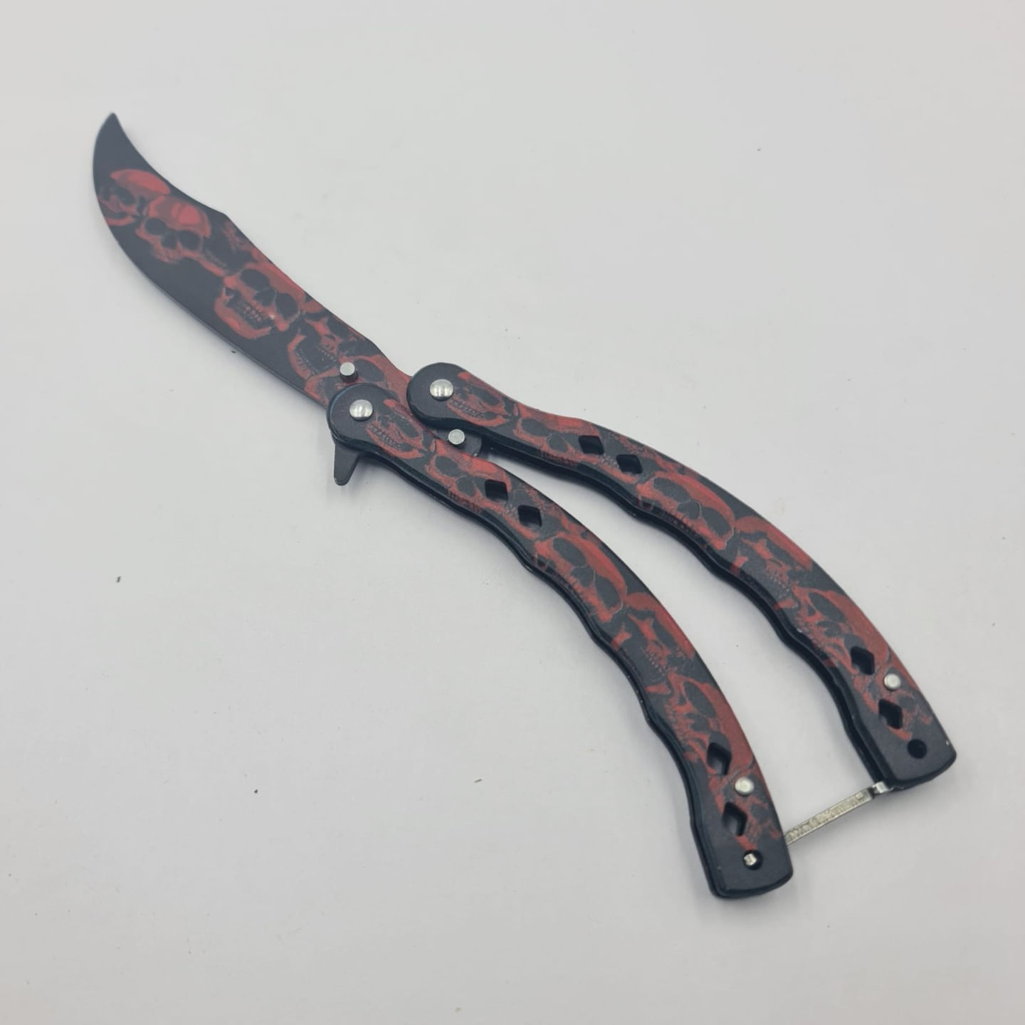 Cutit Fluture Fara Tais Pentru Antrenament, Model Cap de Mort Rosu, Curbat, 24 cm