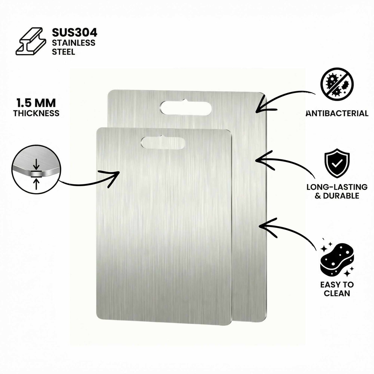 Set de tocătoare (2 piese), Lessentiel Maison, 729BNT1252, Dimensiune: 24 x 34 cm (1 bucată), Argintiu