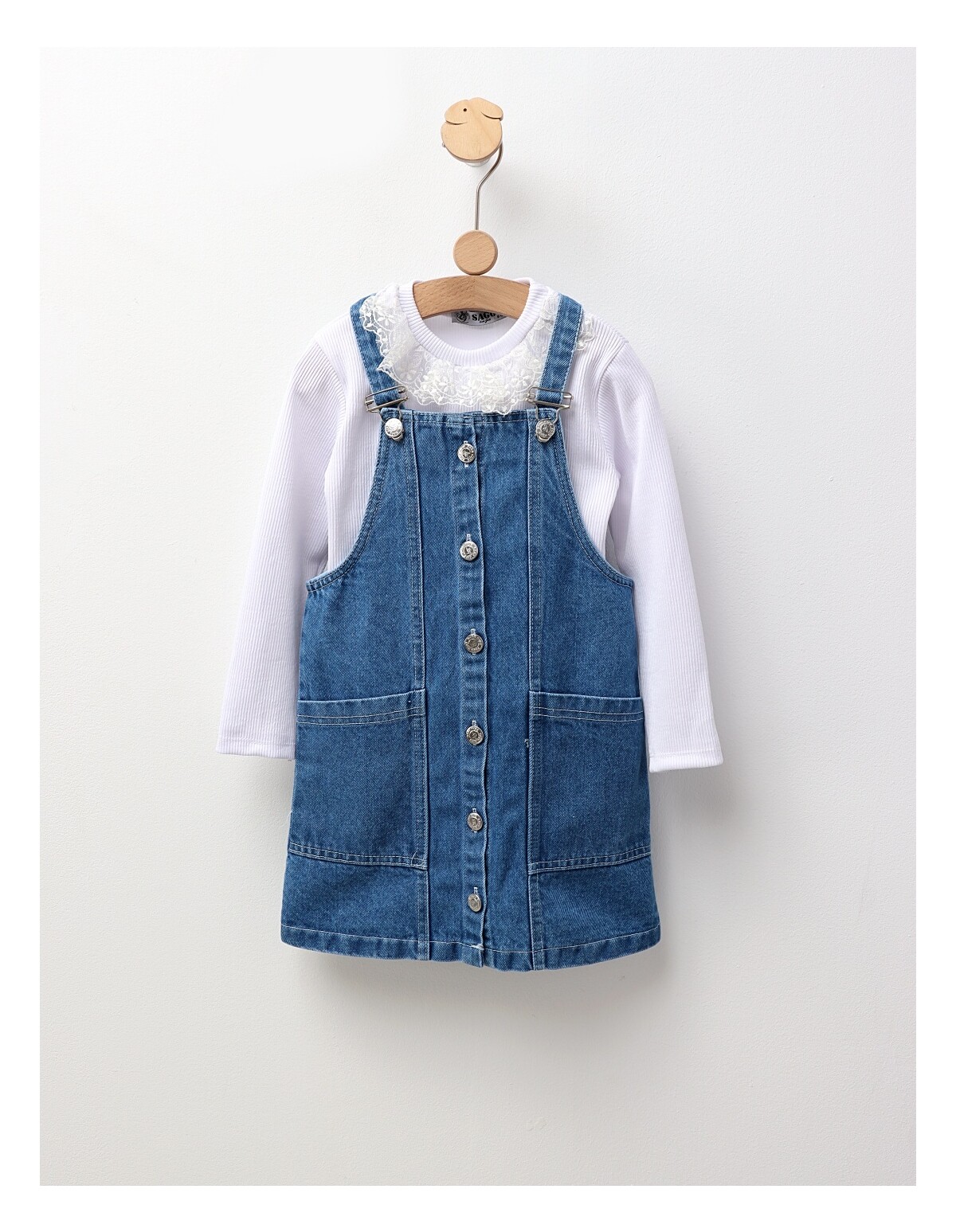Salopeta Little One Lion, alb-albastru