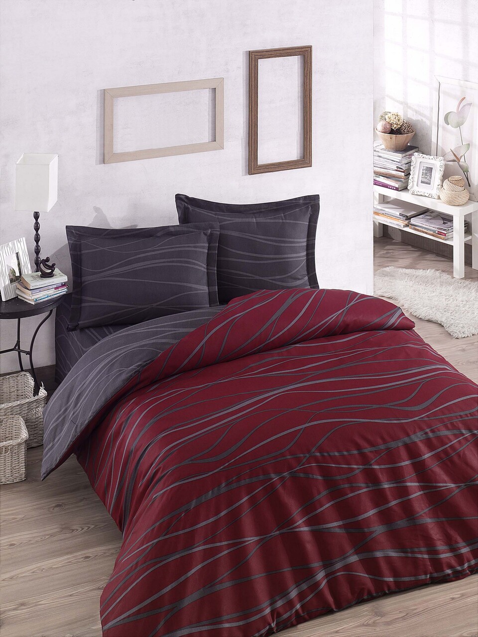 Lenjerie de pat dubla (DE), 3 piese, Lessentiel Maison, Verda, Roșu Claret / Antracit