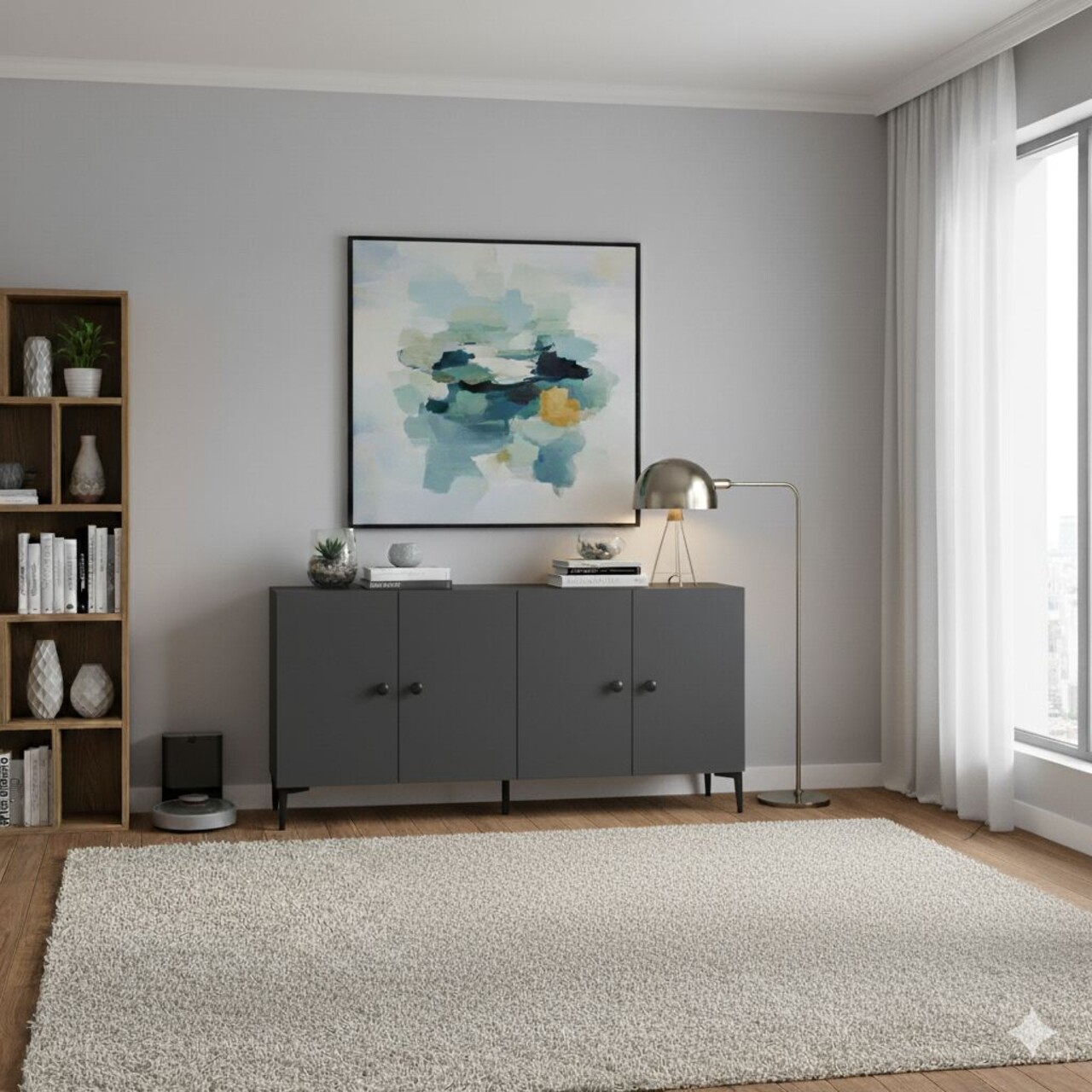 Comoda TV, Nordure, Serenity, 180x50x30 cm, Antracit / Negru