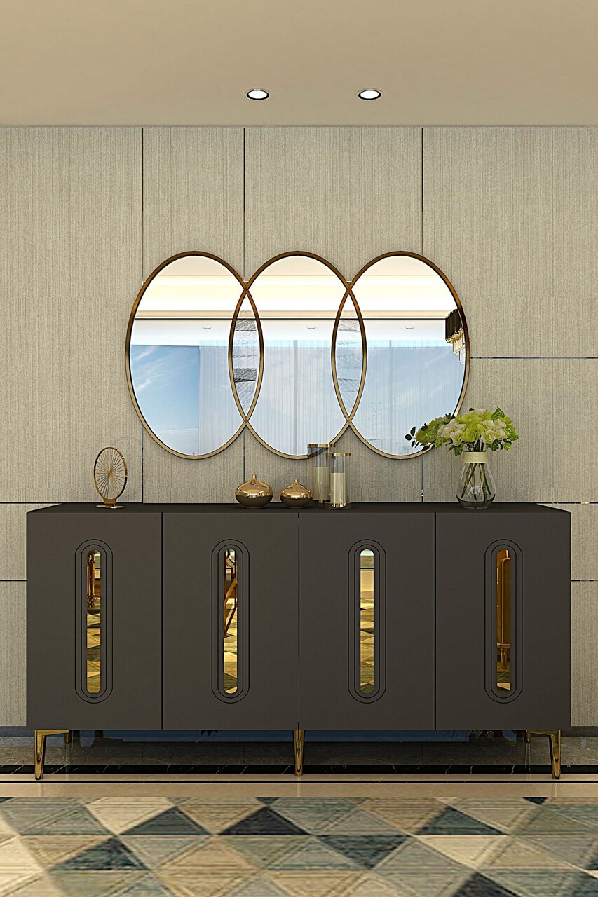 Consola, Hanah Home, Meyra 120, 120x75x32 cm, Antracit / Aur