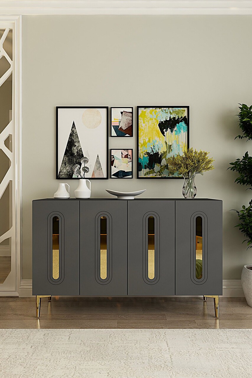 Consola, Hanah Home, Lessi 150, 150x75x32 cm, Antracit / Aur