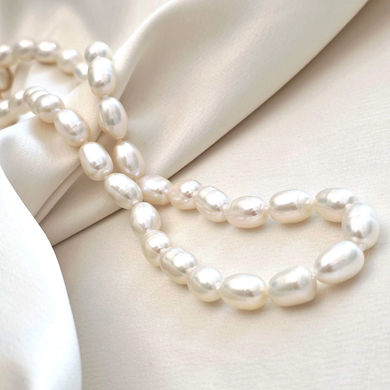 Lantisor cu Perle - model sirag de perle Rice Albe de apa dulce - Argint 925 placat cu Aur Galben 18K