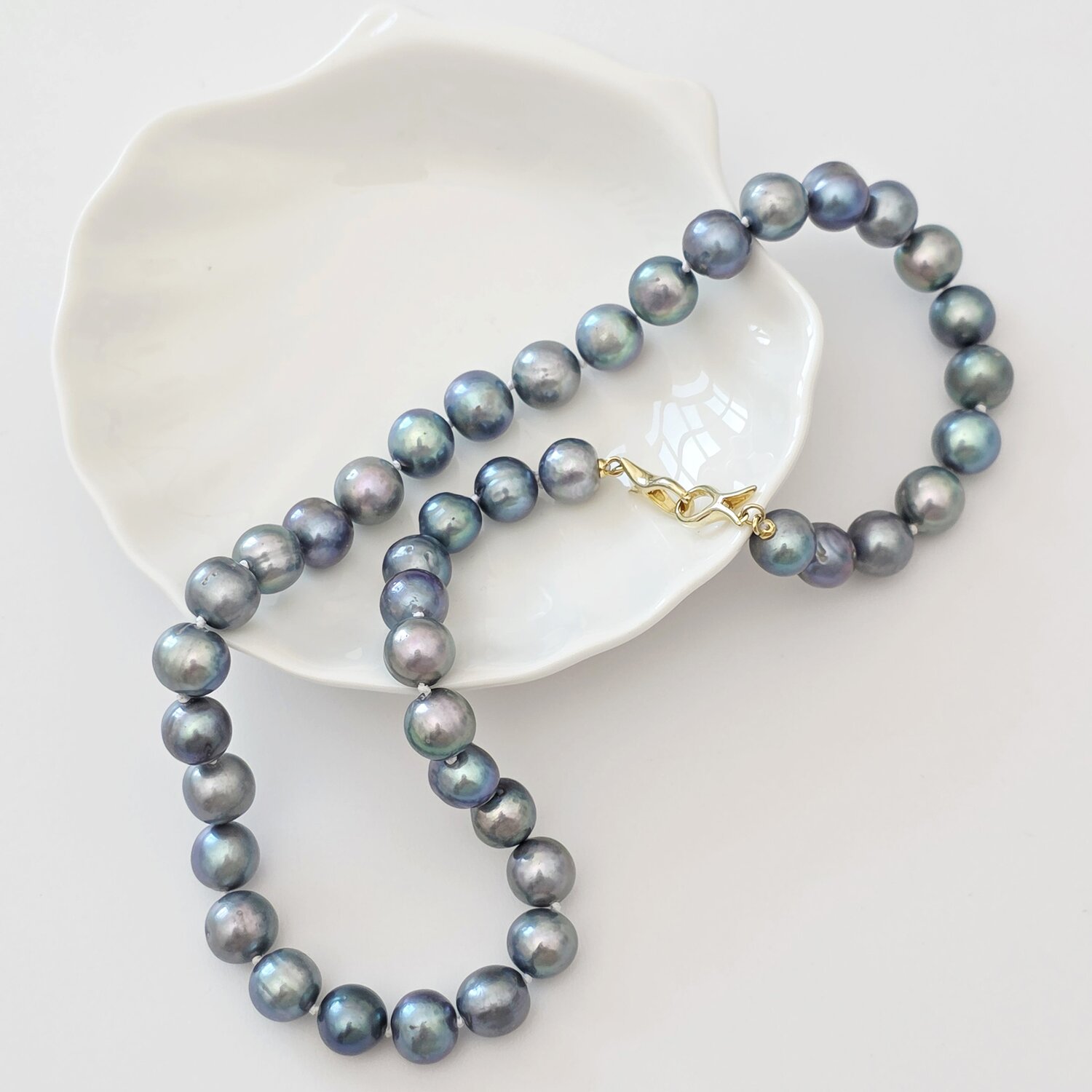 Lantisor cu Perle - model sirag de perle rotunde peacock de apa dulce- Argint 925 placat cu Aur Galben 18K
