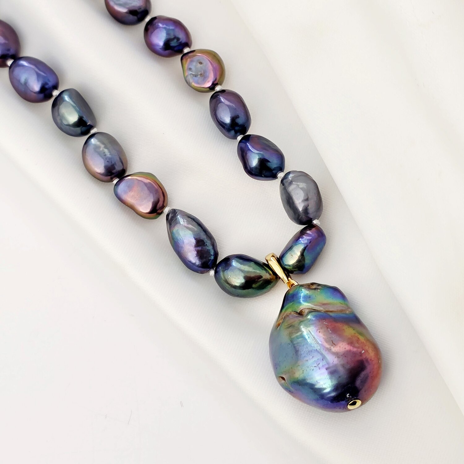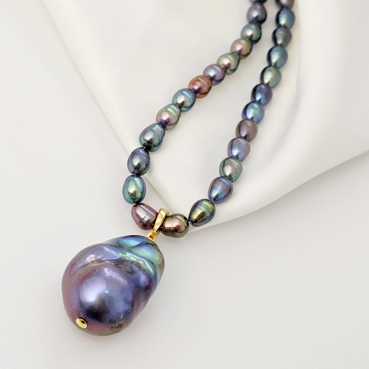 Lantisor cu Perle - model sirag de perle Nugget Peacock de apa dulce - Argint 925 placat cu Aur Galben 18K