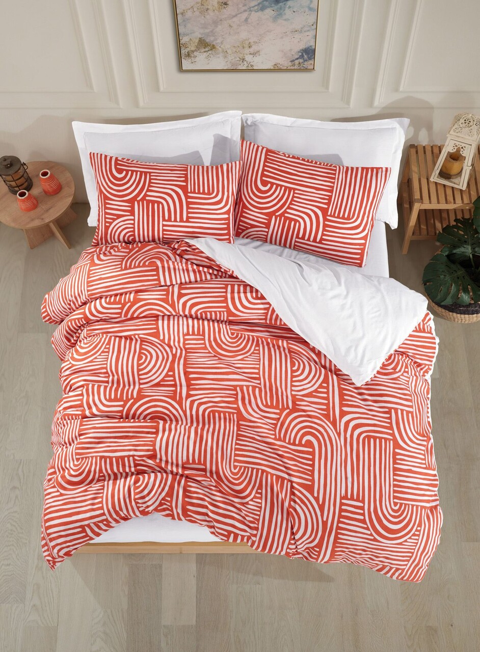 Lenjerie de pat pentru o persoana Single XXL (DE), 2 piese, Lessentiel Maison, Line Art, 65% bumbac/35% poliester, Caramiziu