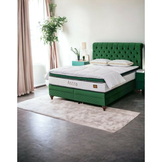 Pat + Saltea gratis Astra, verde - 180x200 cm, design modern, capitonare elegantă, ladă spațioasă de depozitare, structură rezistentă
