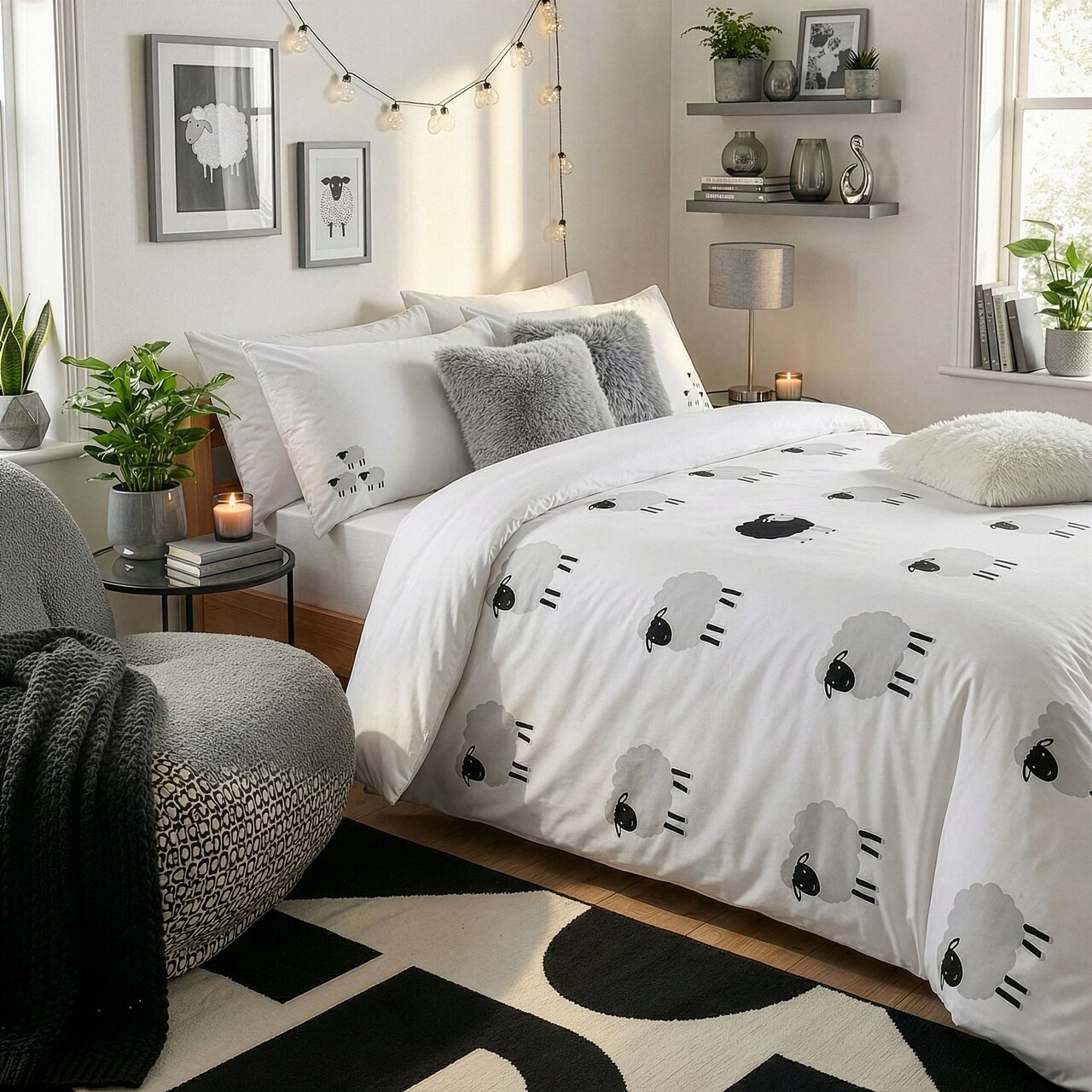Lenjerie de pat dubla Super King (EU) (IT), 3 piese, Lessentiel Maison, The Black Sheep, Gri