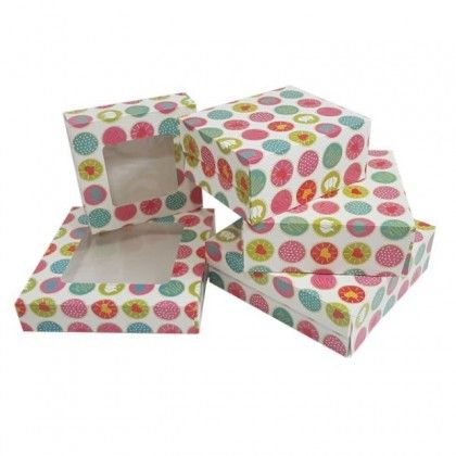 CUTII CU CAPAC COLOR PENTRU PRAJITURI 25X25X8 cm (50buc/set)
