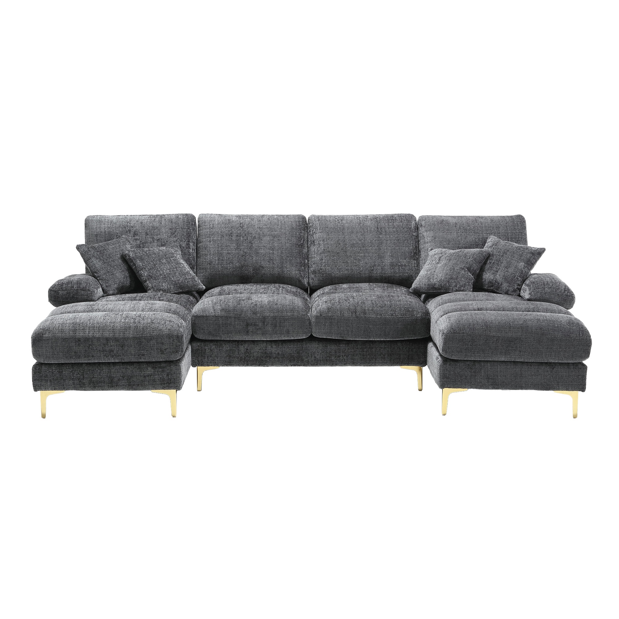 Canapea modulară mare, modernă, în formă de U, din chenille, cu dublu șezlong rabatabil, Gri